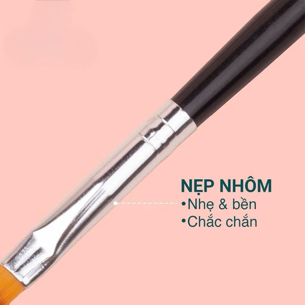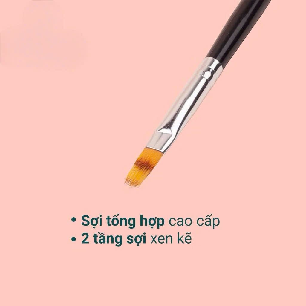 – Cọ ombre đầu dẹt cán nhựa gồm 2 phần: cán cọ và đầu cọ. Cán cọ được làm từ nhựa cao cấp, khó phai màu, đảm bảo về mặt thẩm mĩ cho tiệm nails khi sử dụng lâu ngày. Cán cọ được làm từ sợi lông tổng hợp cao cấp, với 2 tầng sợi, nhóm sợi tầng 2 dài hơn và thưa hơn so với tầng 1, được sắp xếp xen kẻ nhau.