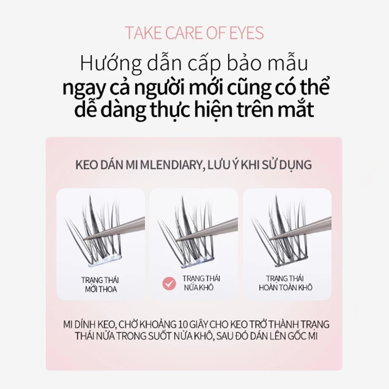Bước 3: Chấm chân mi vào keo, chờ 15s cho keo trở nên trong suốt và có độ kết dính.