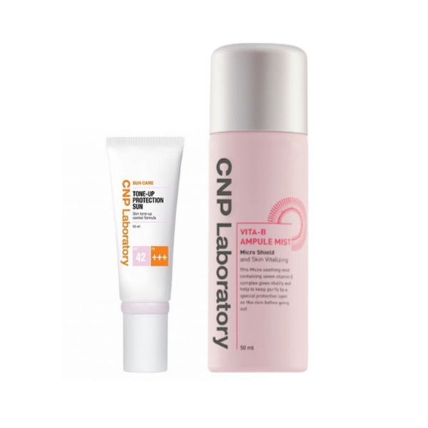 Trong set kem chống nắng Tone – Up + xịt khoáng dưỡng trắng Vita B CNP Laboratory có 2 sản phẩm chăm sóc da gồm kem chống nắng dành cho da hỗn hợp CNP Laboratory Tone-up Protection Sun và xịt khoáng dưỡng da CNP Laboratory Vita B Ampoule Mist.