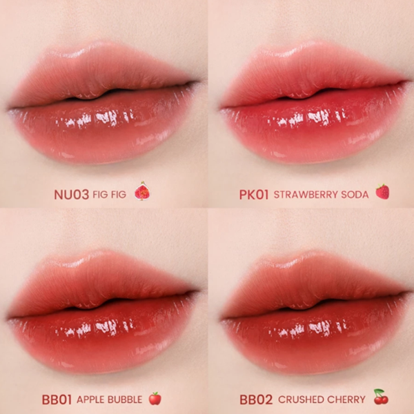 – [Son thạch mọng nước Hàn Quốc] Kết cấu mọng nước nhẹ và trong mờ, giống như sương khi mới thoa, theo thời gian sẽ khiến đôi môi của bạn trông căng bóng và mọng nước như mứt, trong suốt và đầy đặn, tạo đôi môi tiệu ứng thạch kiểu Hàn Quốc.