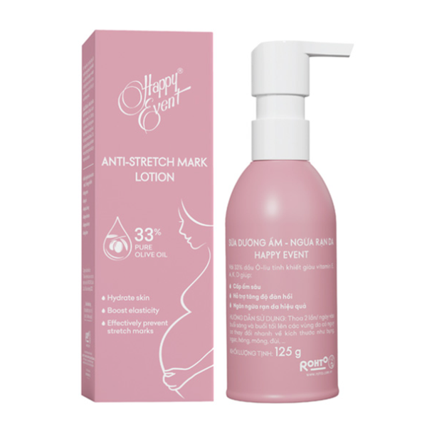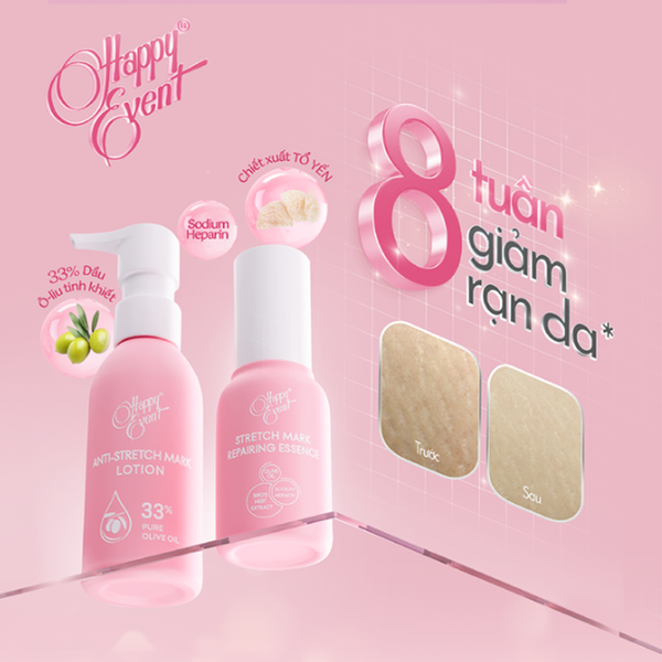 - Happy Event là dung dịch chống rạn da dạng sữa giúp ngăn ngừa các vết rạn, duy trì trạng thái da săn chắc, dưỡng ẩm và cung cấp nhiều dưỡng chất cho da.