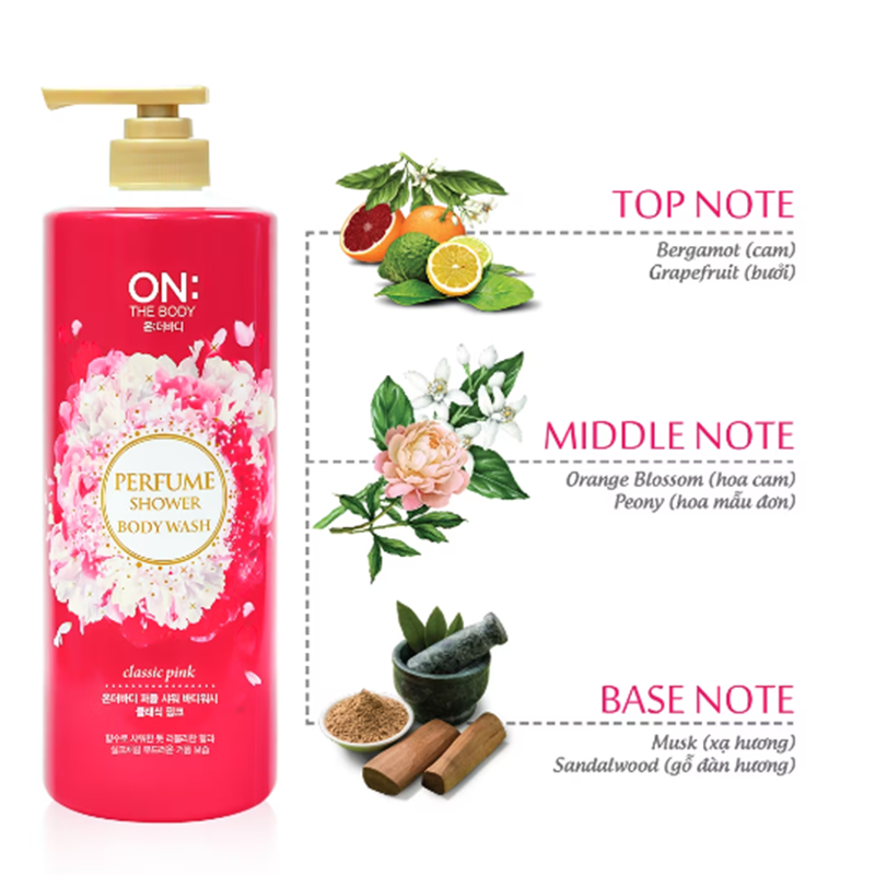 Sữa Tắm On: The Body Dưỡng Ẩm Hương Nước Hoa là dòng sữa tắm đến từ thương hiệu chăm sóc da On: The Body (thuộc tập đoàn LG của Hàn Quốc), có kết cấu dạng kem đặc, nhẹ nhàng làm sạch cơ thể, lấy đi bụi bẩn, bã nhờn trên da, mang lại độ dưỡng ẩm mịn màng tránh để làn da khô ráp, nứt nẻ và hương thơm nước hoa từ thiên nhiên nhẹ nhàng, quyến rũ, lưu hương suốt cả ngày.